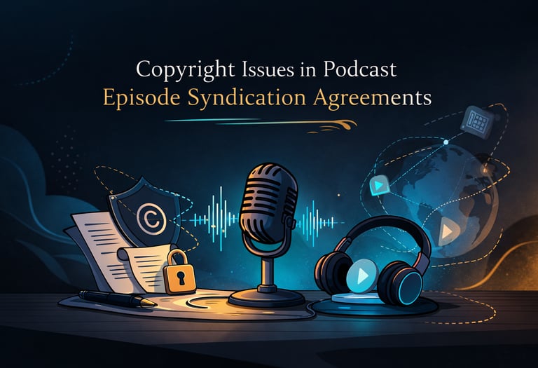 This particular article precisely examines copyright issues in podcast episode syndication agreements with reference to the Copyright Act, 1957, and the Copyright Act of 1976, emphasizing and focusing on the need for concise contractual drafting to prevent infringement and revenue disputes.