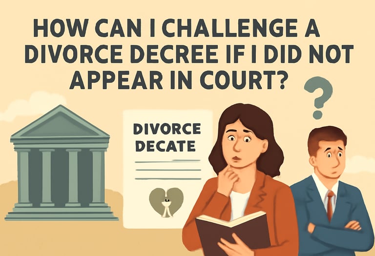 How can I challenge a divorce decree if I did not appear in court?