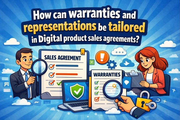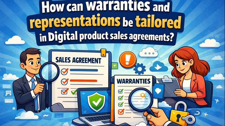Sale agreements based on warranties and representations that sell digital products should be carefully and context-specifically adjusted to consider the peculiarities of digital goods and services. The problems concerning functionality, intellectual property, data protection, cybersecurity, and technological dependency cannot be covered with the help of the conventional sales clauses. Through harmonizing the contractual promises with the technological facts and the business customs, the parties will be able to share the risk better and minimize the chances of conflicts. With digital goods always in pursuit of improved forms, the use of the tailor-made warranties and representations will be fundamental towards instilling trust, certainty, and efficiency in digital commerce.