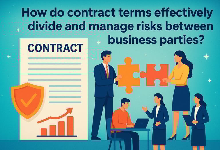 How do contract terms effectively divide and manage risks between business parties?