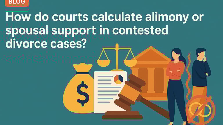How do courts calculate alimony or spousal support in contested divorce cases?