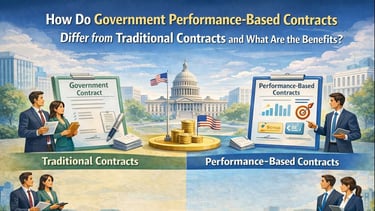 How do government performance-based contracts differ from traditional contracts, and what are the benefits?