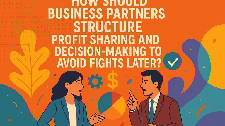 How should business partners structure profit sharing and decision-making to avoid fights later?