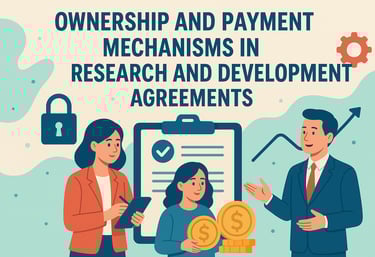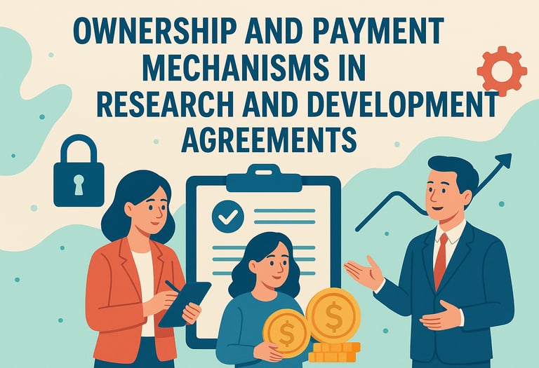 Payment structures in research and development agreements play a crucial role in aligning economic interests, risks, and contributions of stakeholders. Different payment types—fixed fees, royalties, and milestone payments—correspond to specific challenges that are usual in the course of balancing innovation, investment, and performance. Fixed fees provide for consistent compensation, facilitating budget predictability; milestone payments are attached to accomplished benchmarks, aligning progress with incentives; whereas royalties reward ongoing collaboration and exploitation of innovation, thus introducing revenue uncertainty.