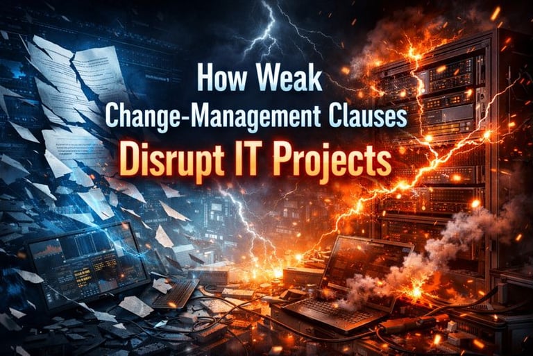 Weak change management clauses in IT contracts can lead to uncertainty, scope creep, delay disputes, and governance failures. Discover why robust clauses are essential for legal protection and effective project management.