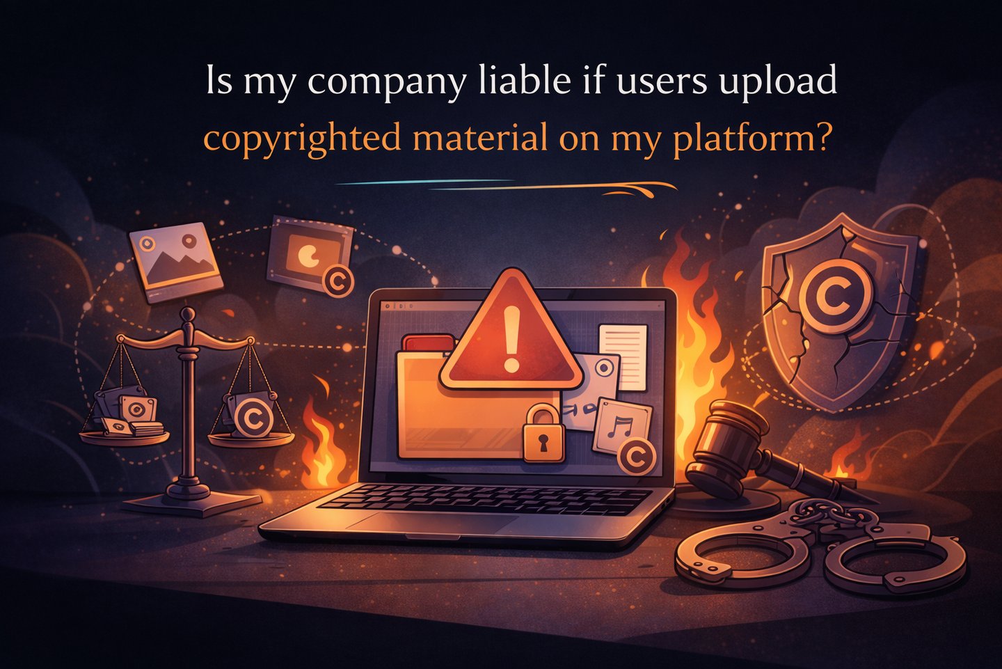 Is my company liable if users upload copyrighted material on my platform?