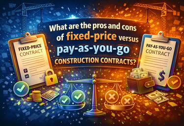 Discover the pros and cons of fixed price and pay-as-you-go construction contracts. Learn about risk allocation, cost control strategies, and which contract type is best for various projects and stakeholders.