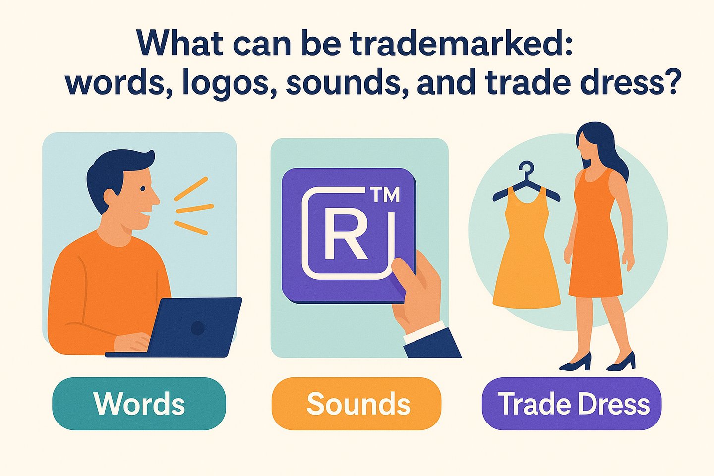 What can be trademarked: words, logos, sounds, and trade dress?