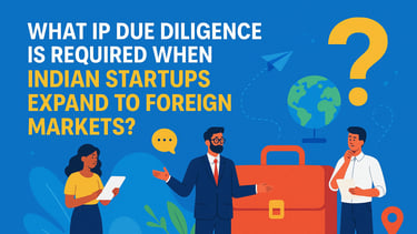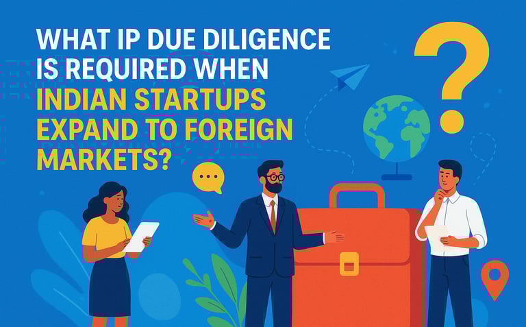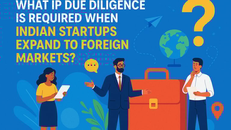 Intellectual property (IP) due diligence is an important strategic defense when Indian startups go global. This article discusses the particular IP due diligence steps that Indian startups need to undertake when venturing into the foreign market, that is, ownership checks, territorial coverage checks, freedom to operate checks, trade secrets and data protection, licensing, and enforcement risks. Systematic IP due diligence not only helps in reducing legal risk but also enhances credibility in the eyes of investors, partners, and regulators.