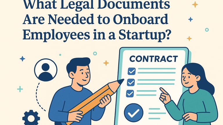 Startups need key legal documents like offer letters, NDAs, and ESOPs to ensure compliant, structured, and dispute-free employee onboarding.