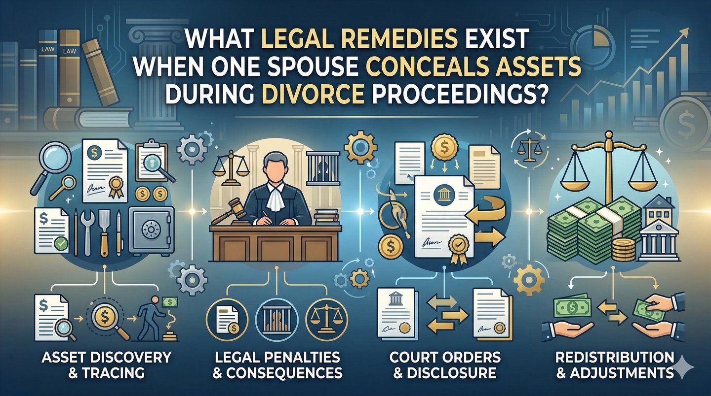 WHAT LEGAL REMEDIES EXIST WHEN ONE SPOUSE CONCEALS ASSETS DURING DIVORCE PROCEEDINGS