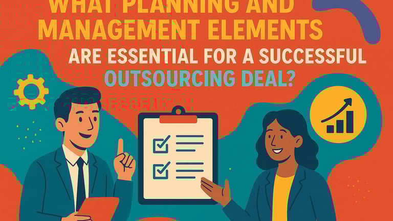 This article identifies and explains the essential legal, operational, and managerial elements that parties must address at the planning phase and maintain throughout the lifecycle of an outsourcing deal.