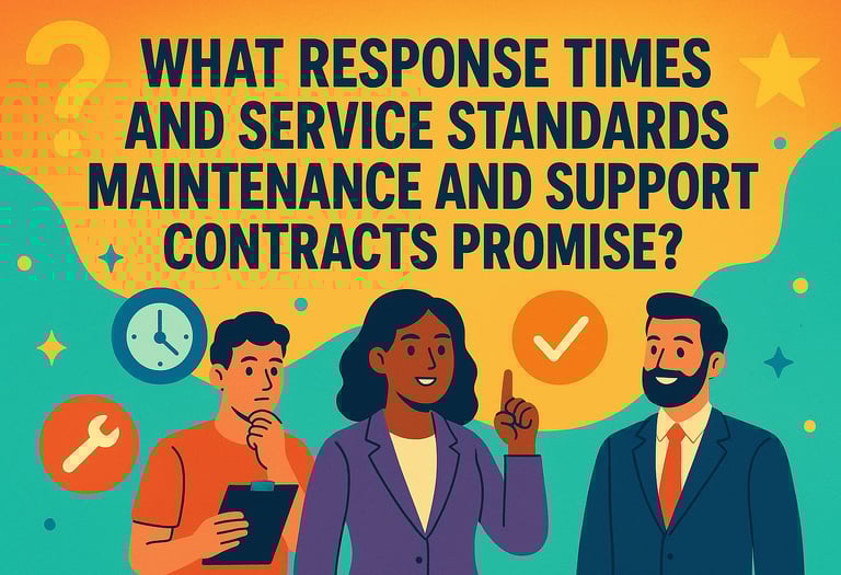 Maintenance and service contracts keep business equipment and software running reliably, supporting efficiency and service availability. Clear, practical response times and standards help prevent disputes and maintain strong operational performance.