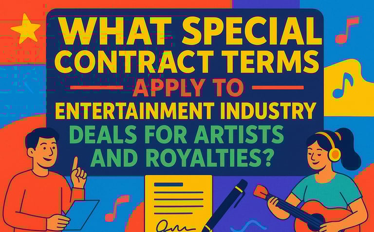 What special contract terms apply to entertainment industry deals for artists and royalties?
